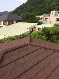 豊島区高松にて風災で損傷したスレート屋根にコロニアルクァッドを用いた一部葺き替え工事を施工