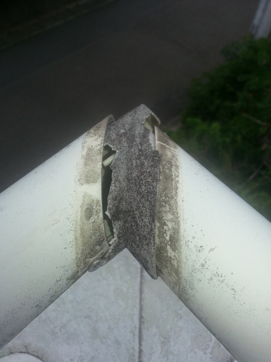 須賀川市にてトラックの荷台がぶつかり破損した工場の雨樋修理。部分的な工事も大歓迎