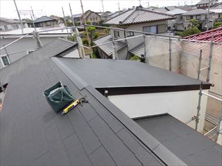 豊島区南大塚にて台風で損傷したスレート屋根にスーパーガルテクトを用いたカバー工事を施工しました
