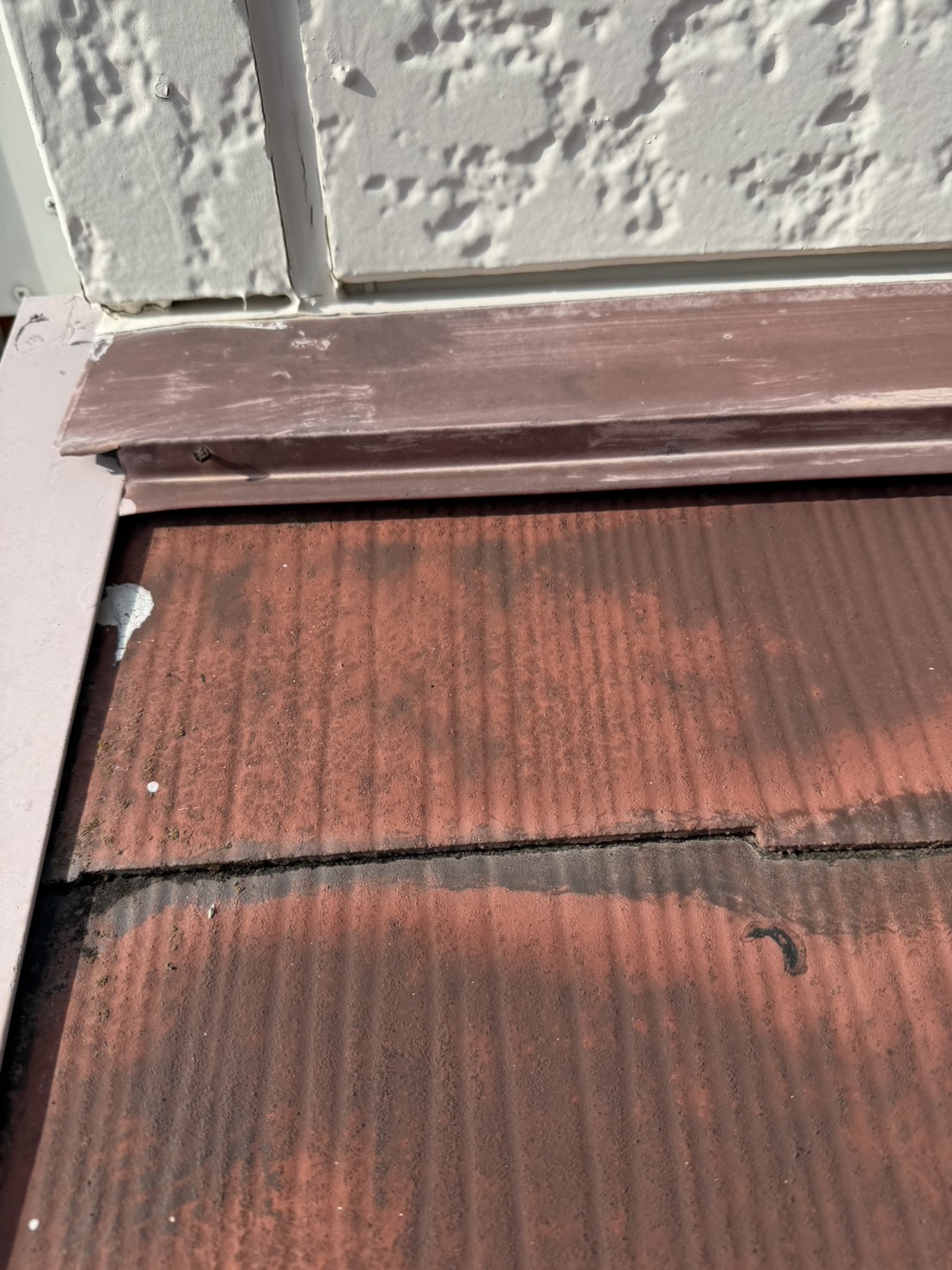 いわき市にて雨漏りしたベランダ下の折半屋根の上に新しく板金屋根をカバーする屋根リフォーム工事を実施