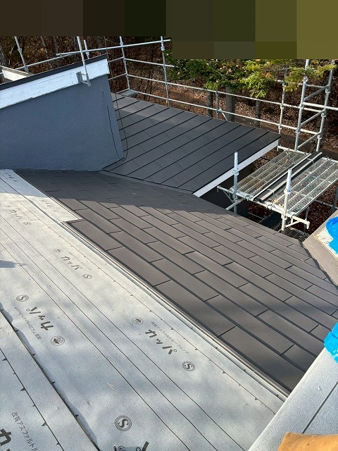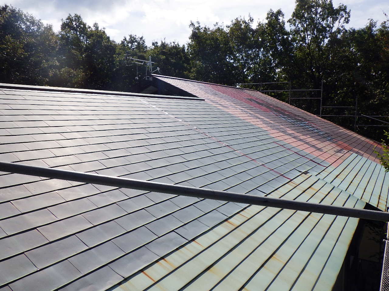 南都留郡鳴沢村で屋根カバー工法に断熱材入りの横葺きSGL(ニクスカラープロ)使用