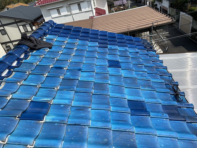 【枚方市】「雨漏りかも?」という不安を解消!棟瓦と谷板金の入れ替え・瓦の葺き直し工事