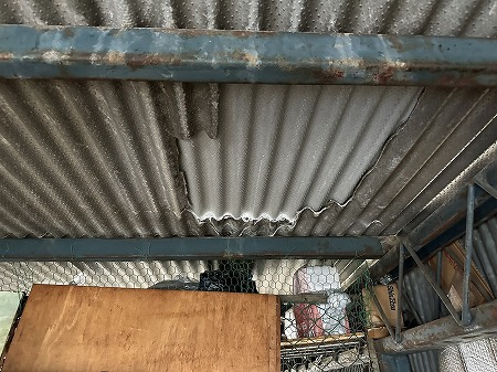 寝屋川市|ガレージ倉庫の雨漏り修理、その場しのぎの補修は逆効果?波板スレート交換事例