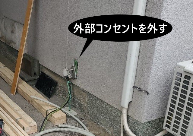 堺市南区|土間コンクリート打ち直し前のカーポート新設と配線工事