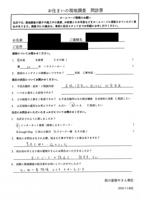 松原市にて築30年のスレート屋根調査を行ったN様の声