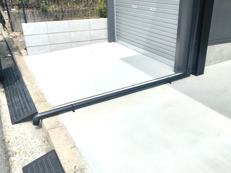 熊取町で新築のカーポートの床に雨水の跡!染み対策として雨樋を延長