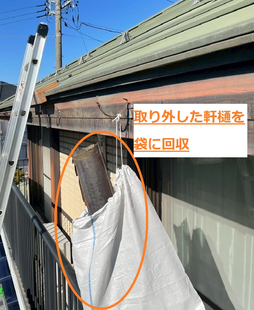 仙台市宮城野区 軒樋の中間部分から破損している車庫の現地調査を行いました!