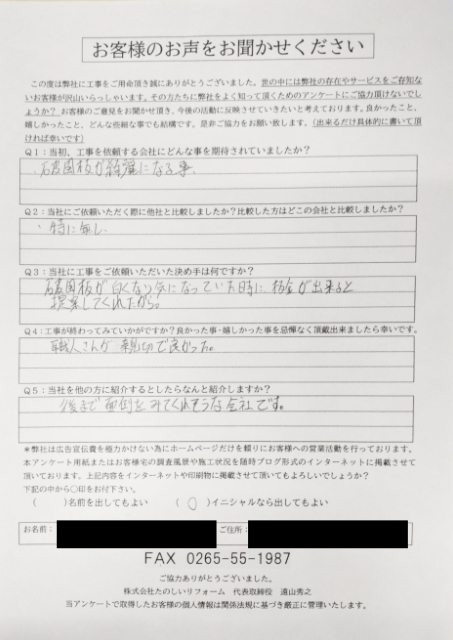 伊那市 丁寧で細かい説明だった、と安心して工事を依頼して頂きました!