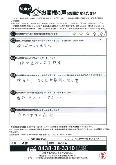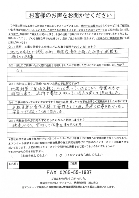太宰府市の屋根調査|お客様からいただいたアンケート「口コミ」