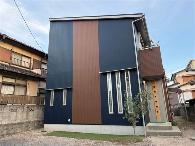 周南市で外壁塗装!ミッドナイトブルー×ブラウンのおしゃれな仕上がり