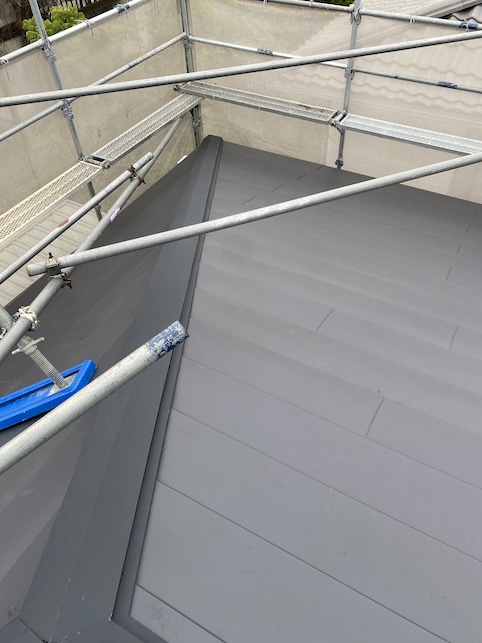 下野市でガルバリウム鋼板屋根材、捨て谷、谷樋取付け