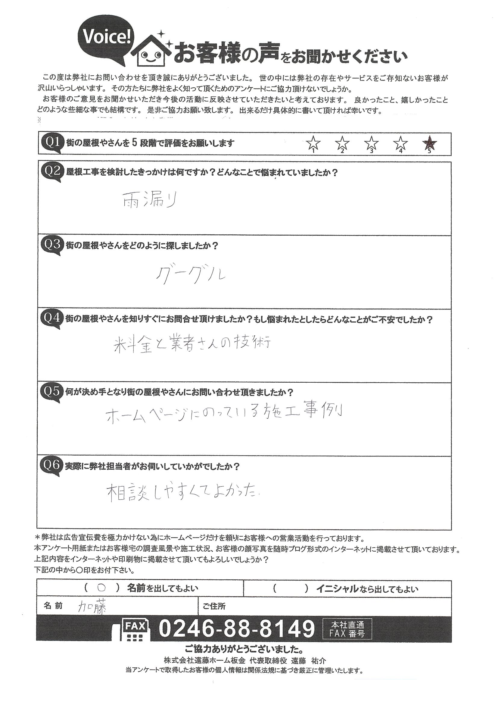 加古郡播磨町 A様邸 雨漏り補修工事にてご依頼。気軽に相談できる良い会社さんと嬉しいお声をいただきました