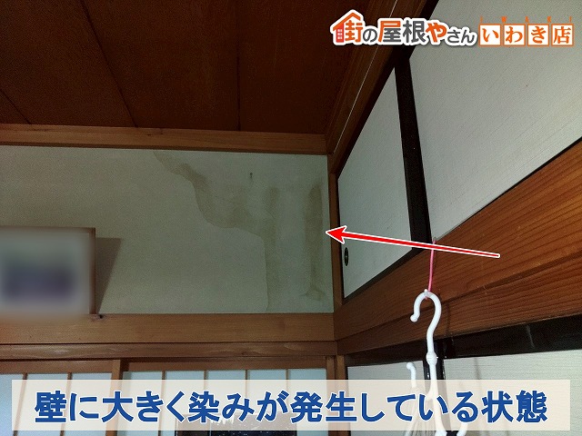 いわき市にて室内に雨漏りが発生!原因は瓦の下の防水シートに発生していた穴