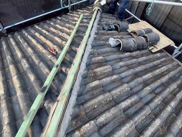 【福岡市南区】瓦屋根の葺き替え工事|老朽化・重さ・谷板金のサビを解消する屋根材撤去工程