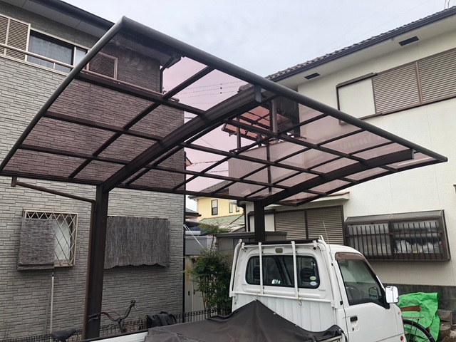 加古川市 N様邸 雹被害によりカーポート屋根破損により貼り替え施工させて頂きました