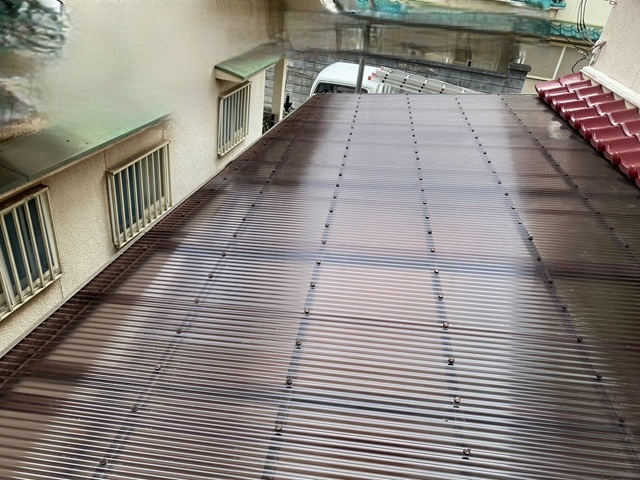 明石市 S様邸 以前屋根工事をしたお客様より雹被害によるご相談を頂き波板貼り替えの施工をさせて頂きました