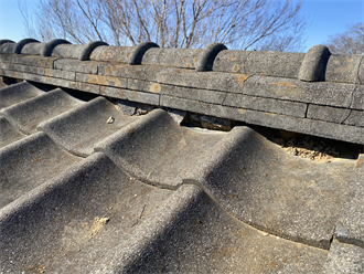 富津市湊で、漆喰の剥がれや棟瓦のズレが起き棟瓦取り直し工事で改善いたしました