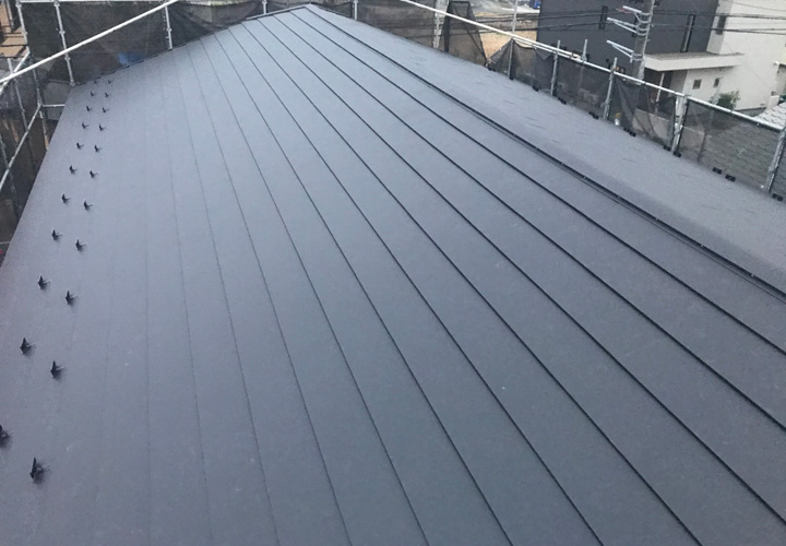 木更津市朝日で屋根瓦がお隣に落下しない様に、金属屋根に葺き替え工事、施工後写真