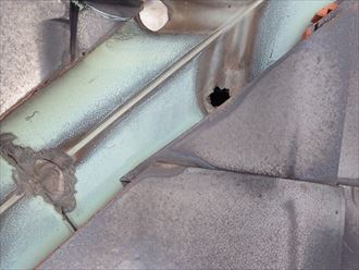 木更津市八幡台にお住まいのお客様は、以前から玄関庇の劣化により雨漏りが生じる様になってからご自身で出来るだけ直していたそうですが、雨漏りがどうしても止まらなかったそうです。来客が来た時に雨が降っていると玄関先でお話が出来ないとの事で、今回修理を検討したそうです!「日常生活に影響がなかったため今まで放置していた…」ということもあり、鉄板に大きな穴が開いてしまったとのことでした(/_;)