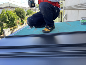 問い合わせをして見ると、思っているよりも早く調査して頂き落下した瓦や、屋根の破損部の瓦などを片付けてくれて、近隣さんに迷惑を掛けなくても良くしてもらえたとの事で、信頼できる業者さんと感じたそうです。  屋根の瓦も年数が経過していた事もあって、金属屋根を提案してもらい今後台風や地震のことを考えてハイグレードのディーズルーフィングに葺き替えることを決断して頂きました。