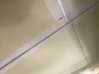 君津市のお宅で新規に天井をクロスに変更するために、天井の下地から改修し、石膏ボードを貼りました。いよいよ仕上げによりクロスを貼る準備をします。