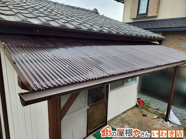 須賀川市にてトラックの荷台がぶつかり破損した工場の雨樋修理。部分的な工事も大歓迎