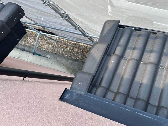 名古屋市名東区の住宅屋根袖瓦取り直し、袖瓦の復旧とコーキング処理による仕上げ工程