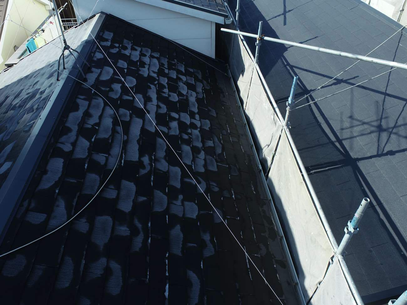 豊田市の住宅で屋根の棟瓦取り直しを実施、安全と品質を確保するための足場設置工程