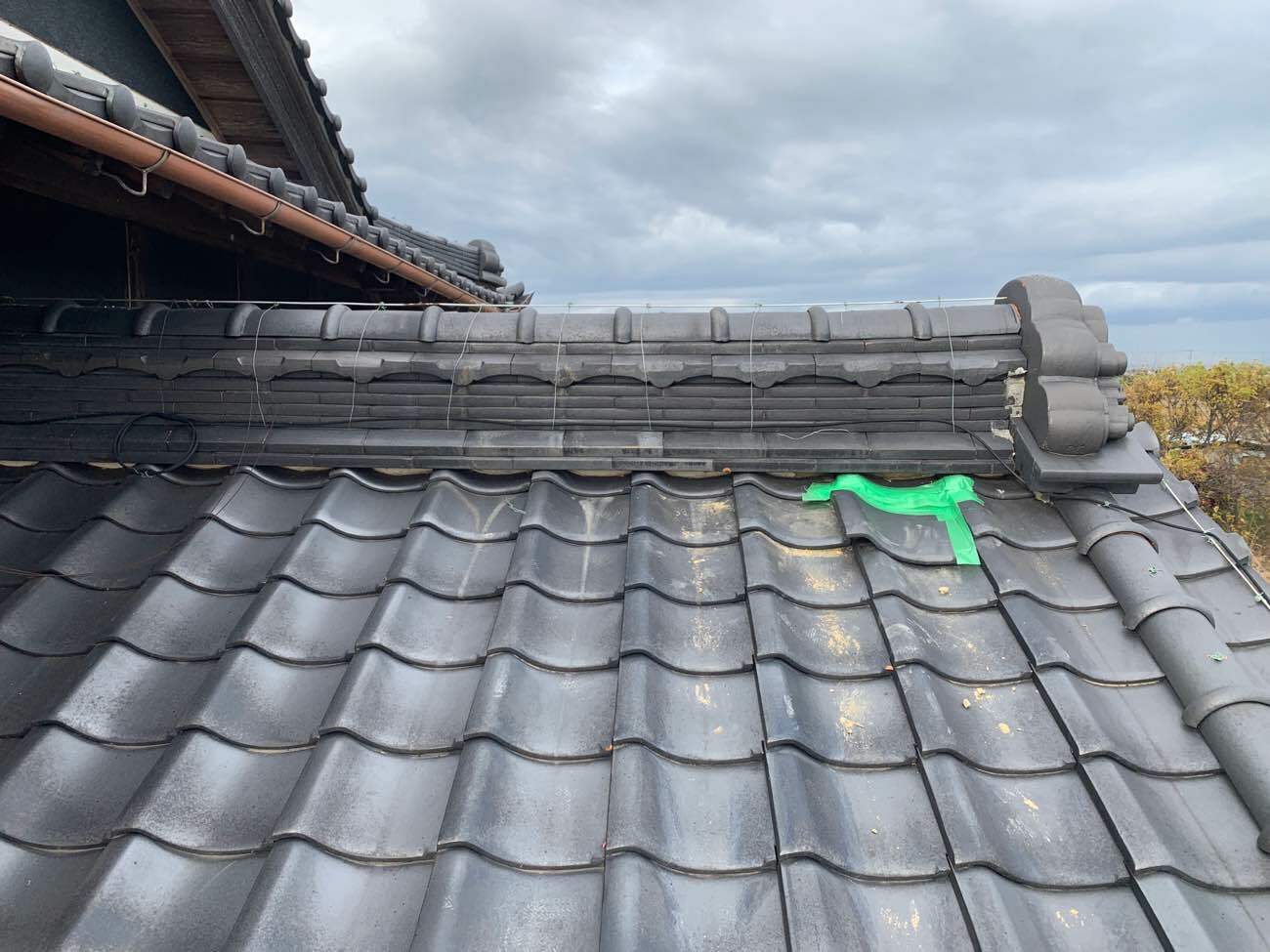名古屋市港区で漆喰が激しく劣化した住宅屋根の棟瓦取り直し、既存棟瓦の取り外し状況