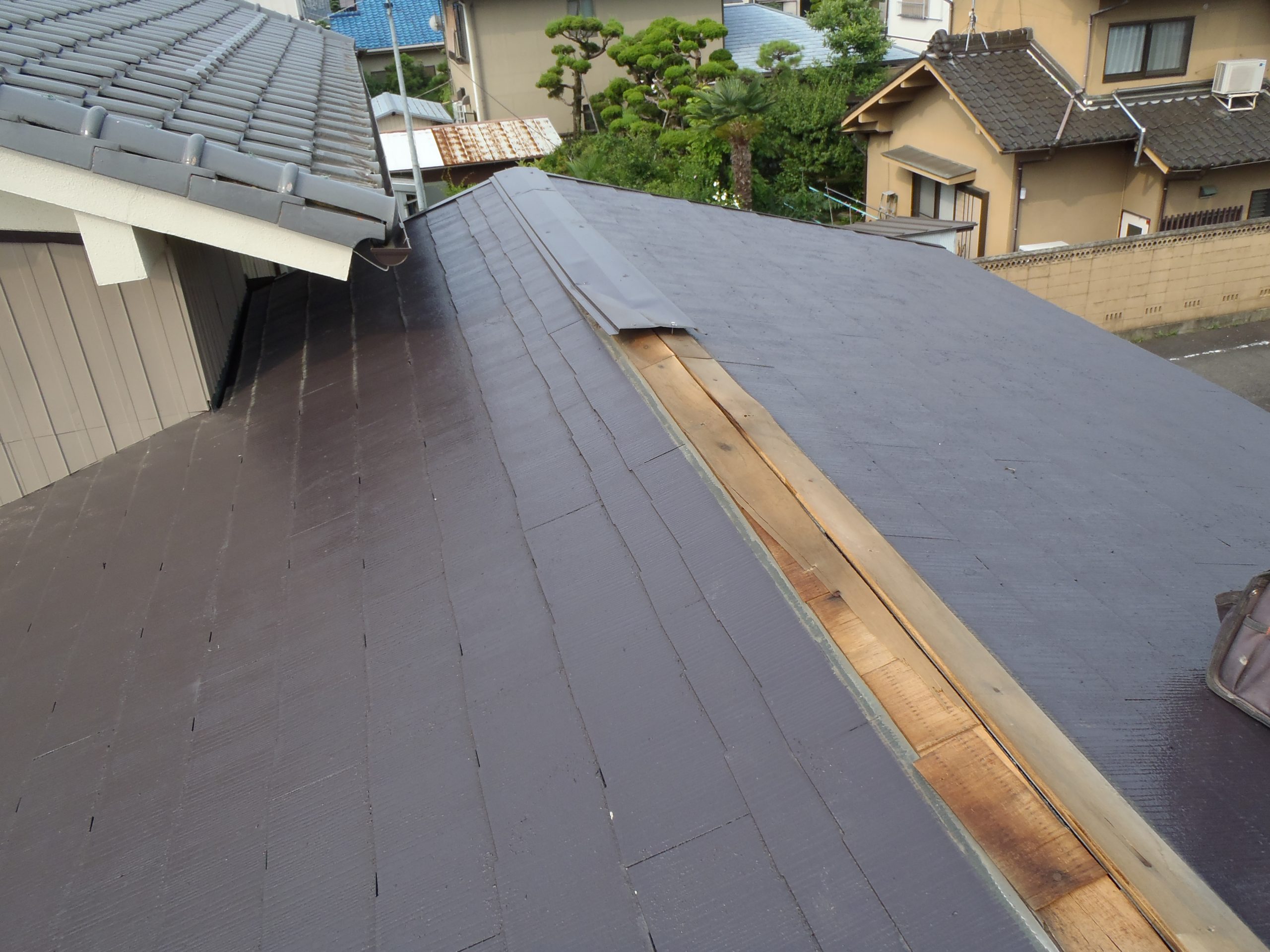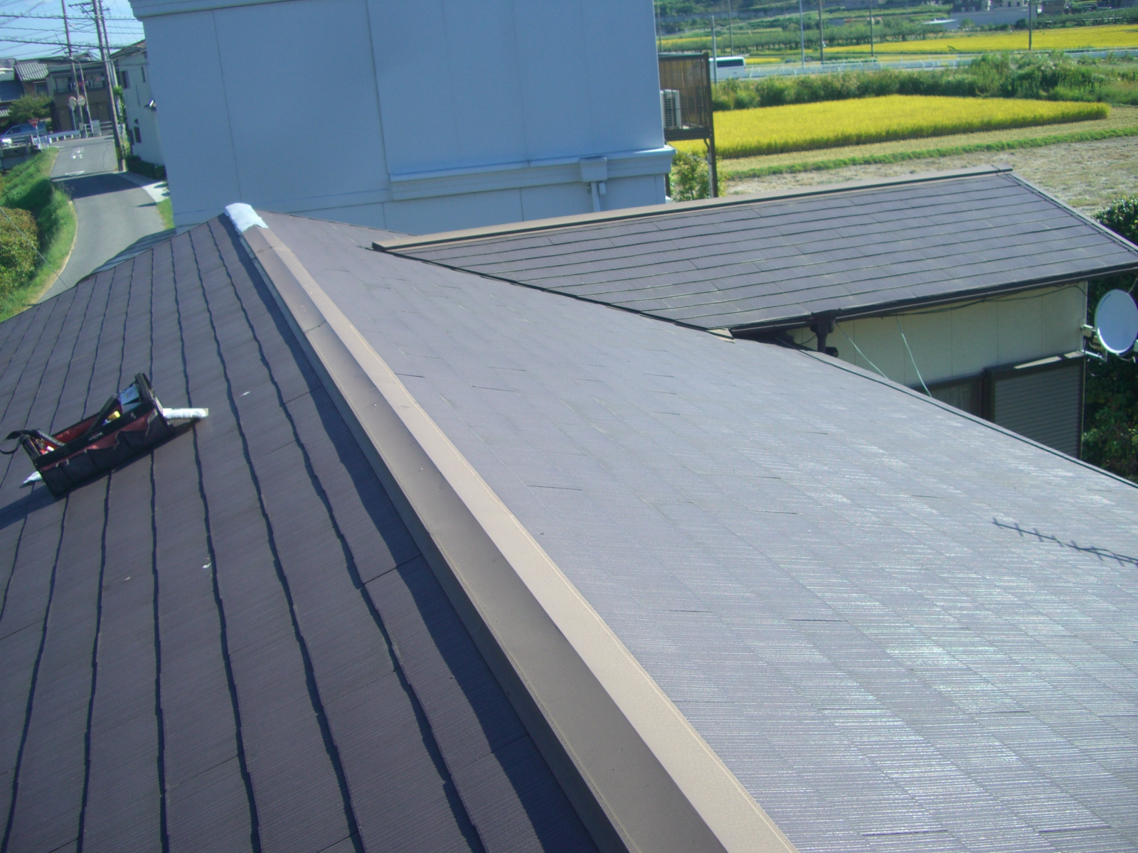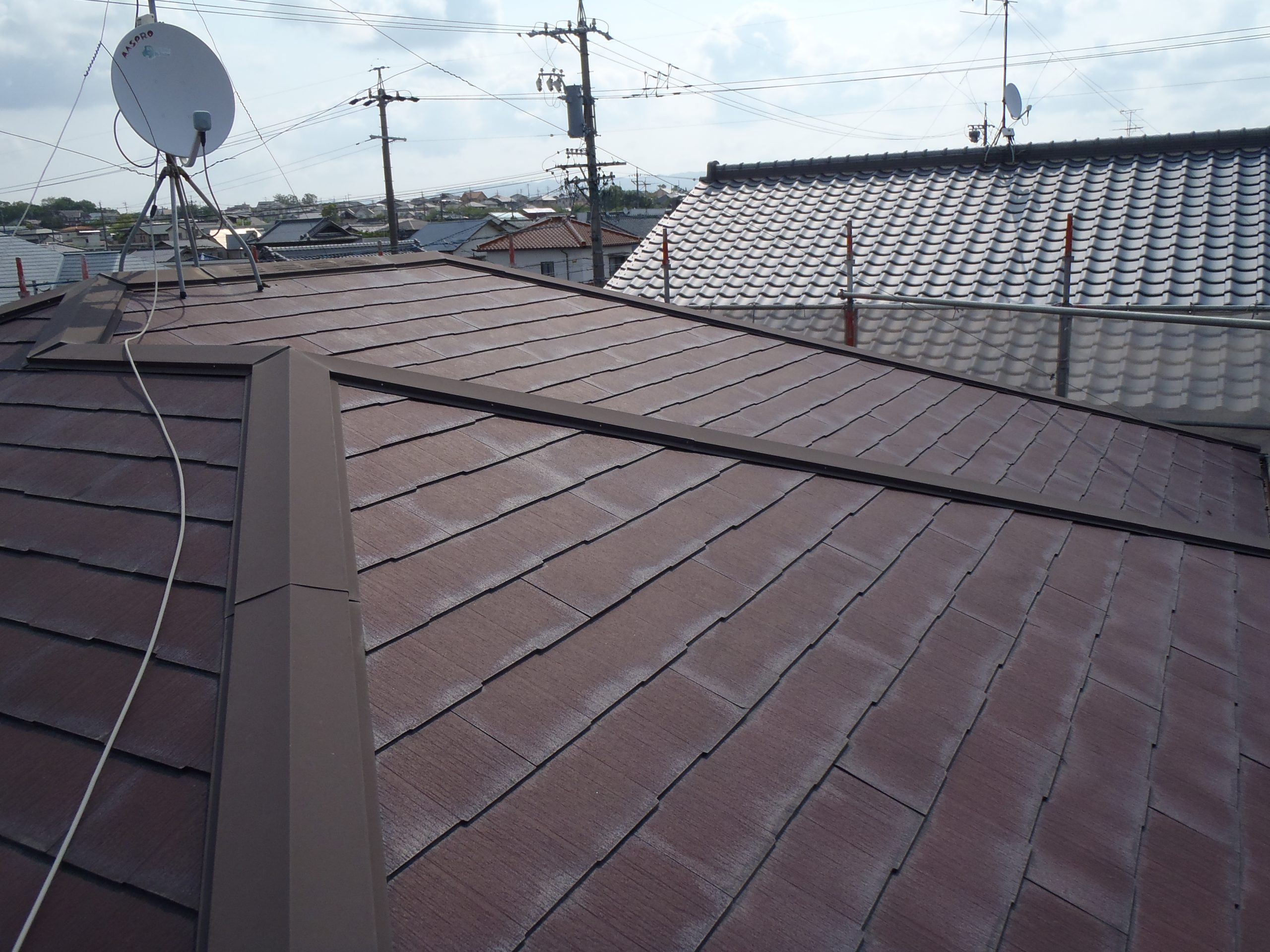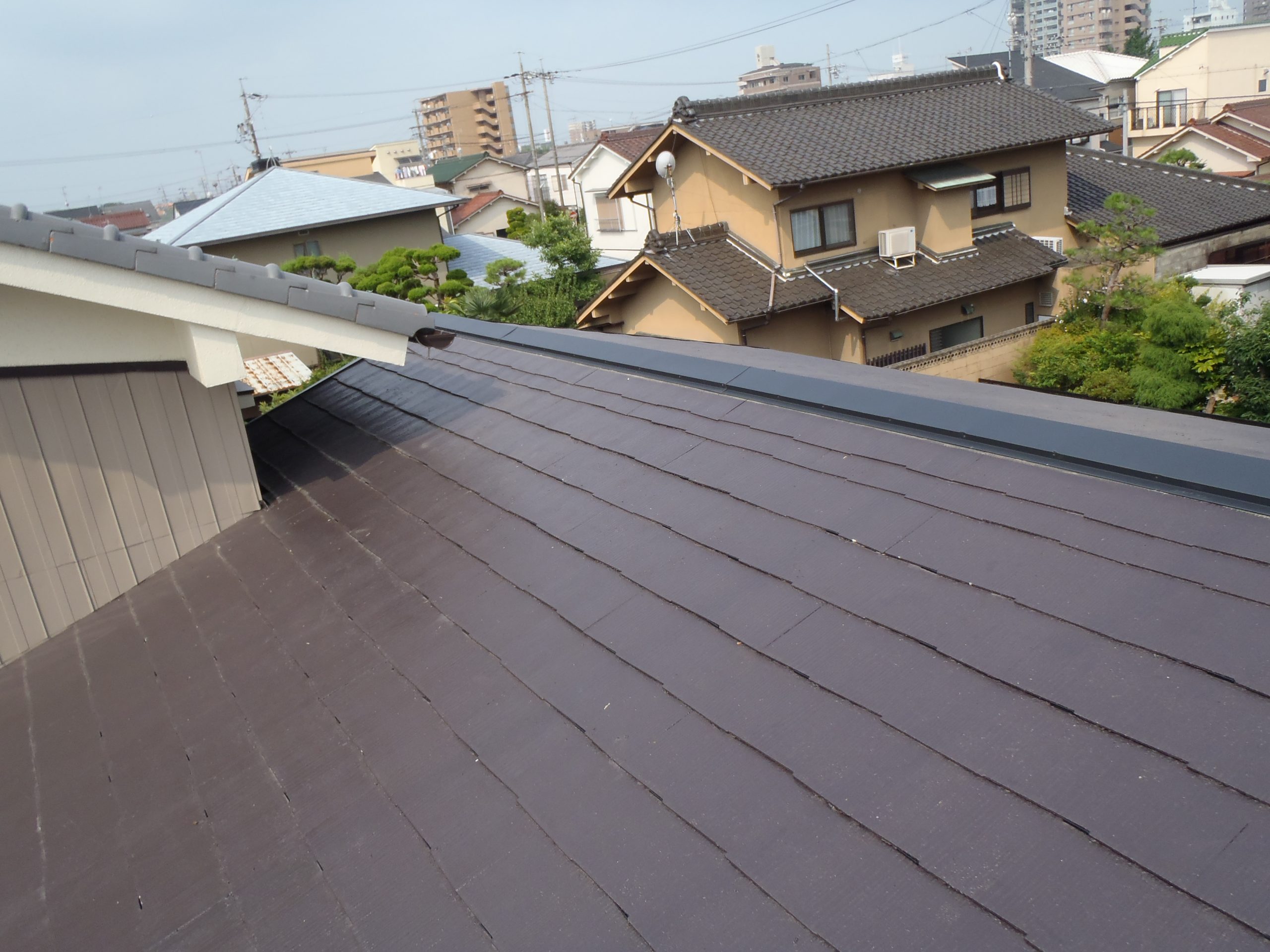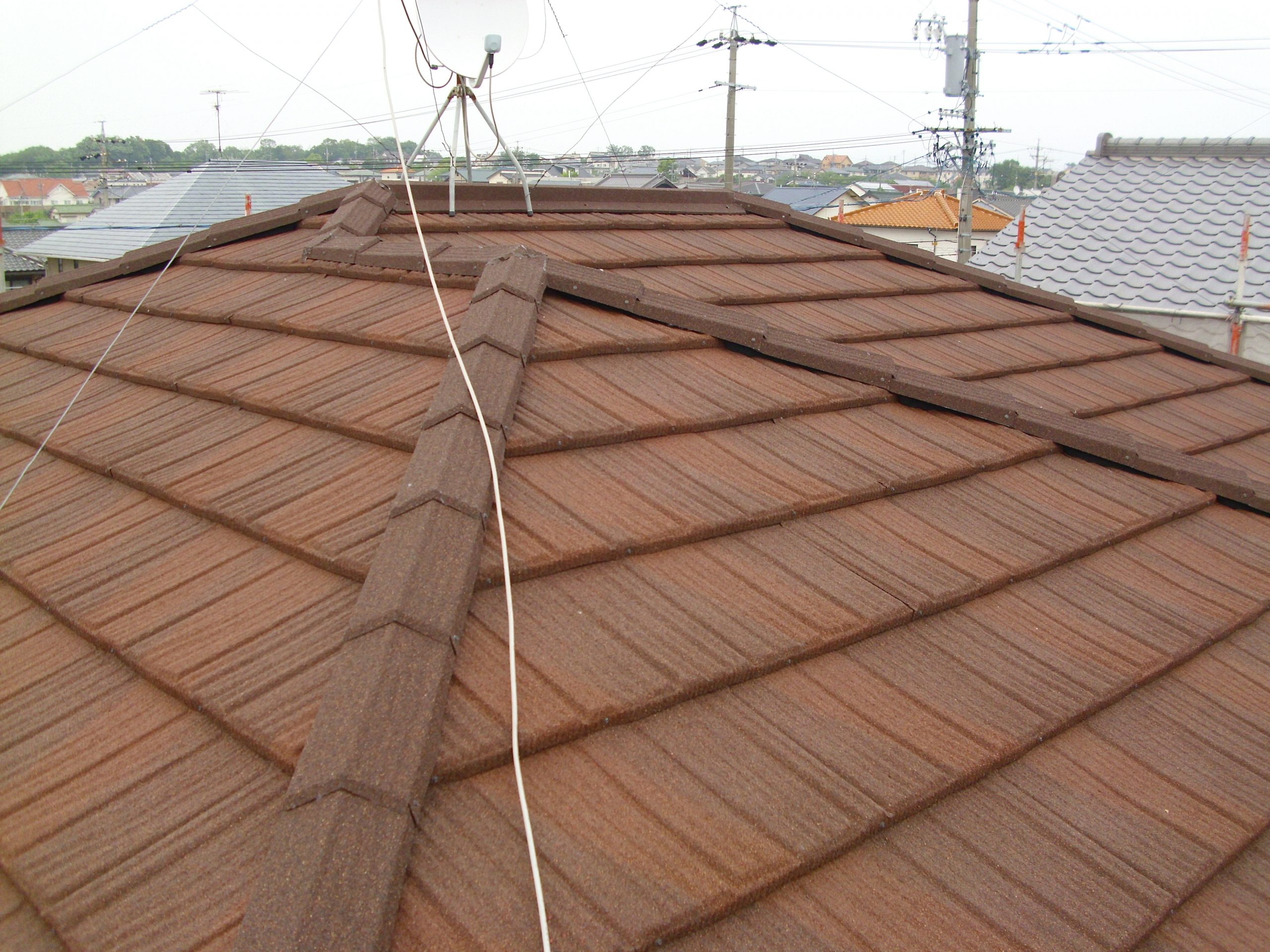 - 同時期に分譲された区画内で、屋根工事や壁の塗り直しをする家が目に付き始めていた。