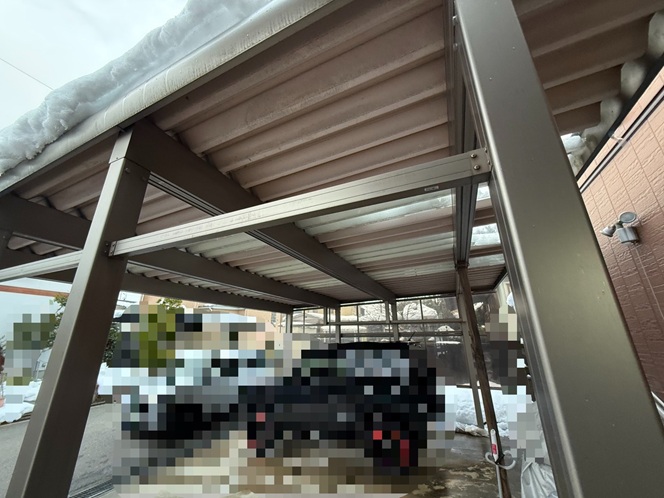 【富山市】雪で屋根のポリカにヒビと穴…サンルームとカーポートを同時に張り替え