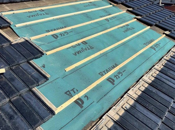 熊本市西区で瓦屋根の葺き直し工事|出隅の捨て水切りを正しく施工し適切な雨仕舞に!
