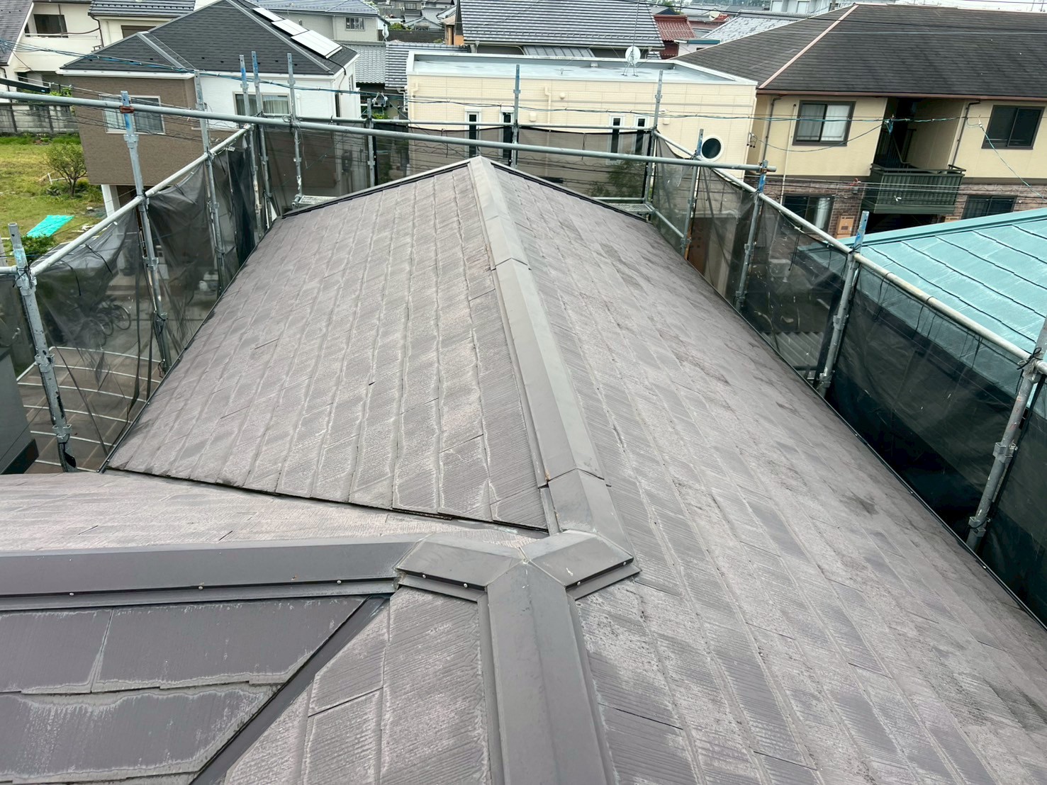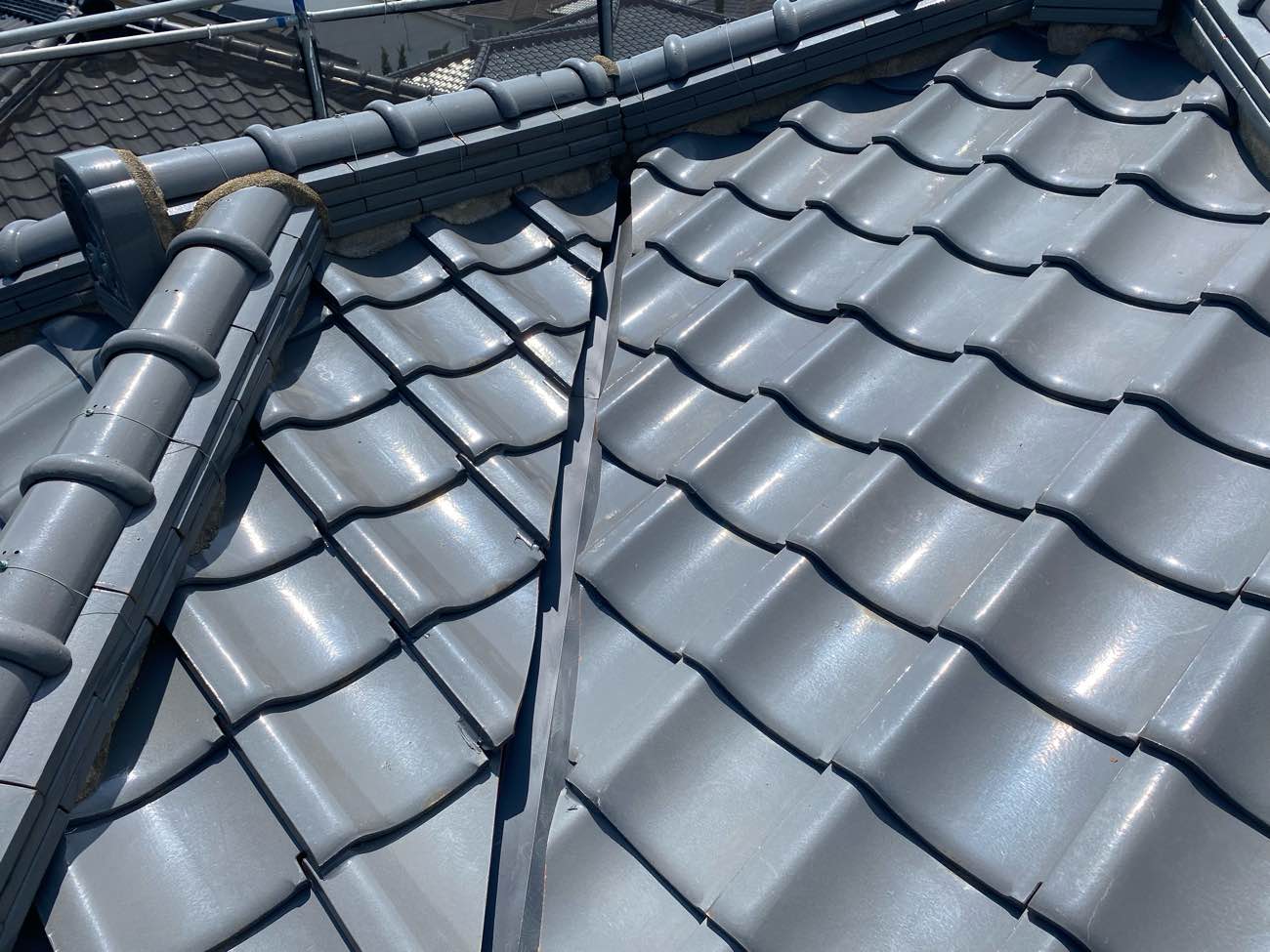 屋根補修工事 棟瓦取り直し 足場 愛知県稲沢市