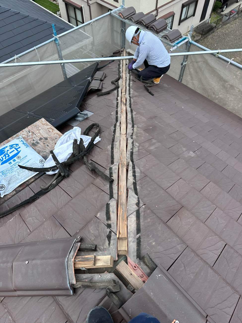 棟瓦取り直し 屋根補修工事 足場 茨城県土浦市