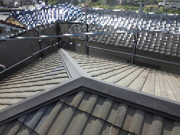 屋根補修工事 棟板金交換 屋根材(スレート・カラーベスト・コロニアル) 兵庫県三田市