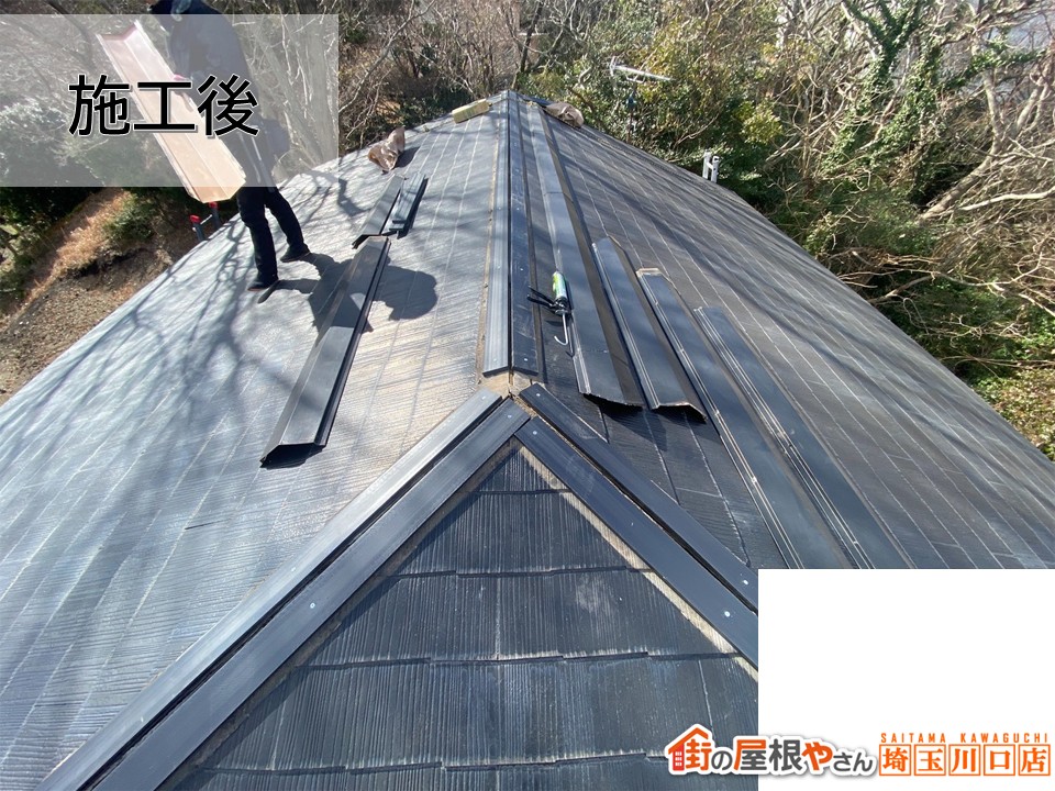 屋根材(スレート・カラーベスト・コロニアル) 屋根材(金属) 屋根材(アスファルトシングル) 屋根補修工事 棟板金工事 埼玉県越生町
