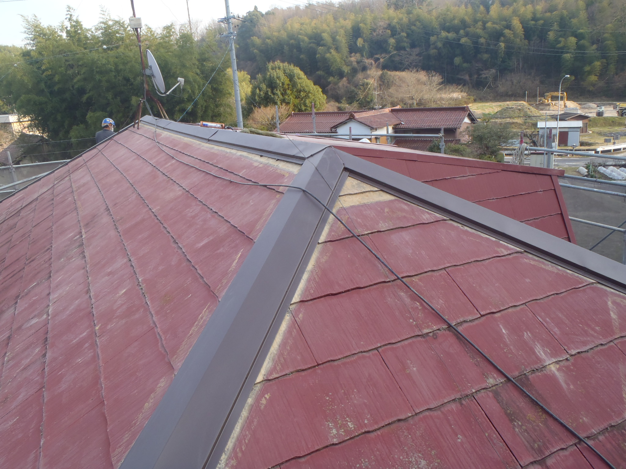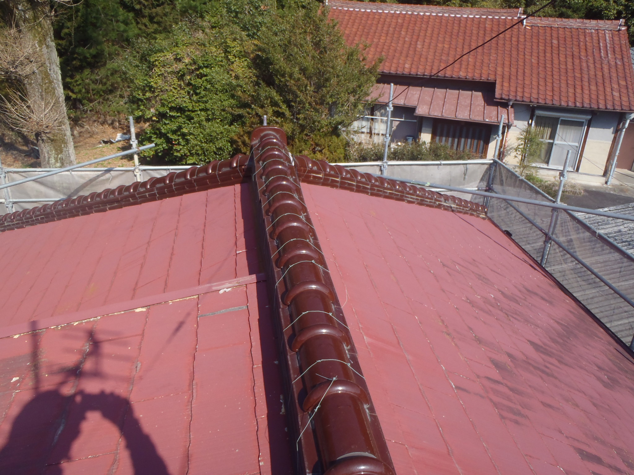 屋根材(スレート・カラーベスト・コロニアル) 屋根塗装 足場 長野県飯島町