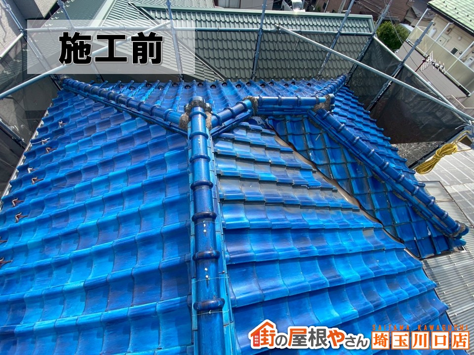 屋根補修工事 棟瓦取り直し 足場 台風 愛知県一宮市