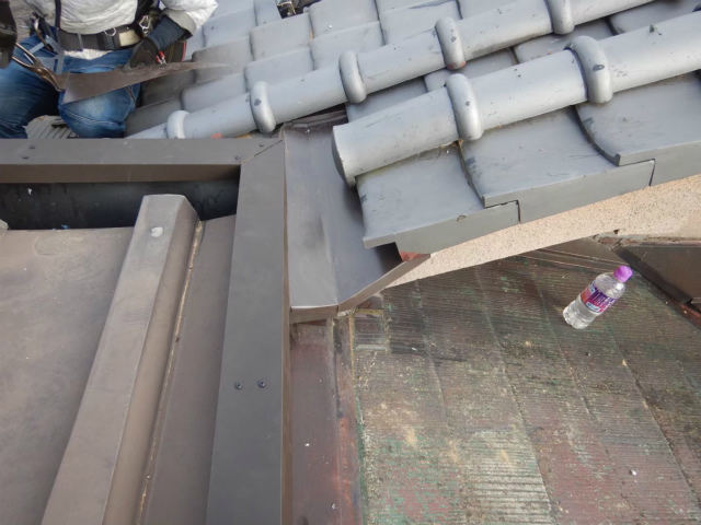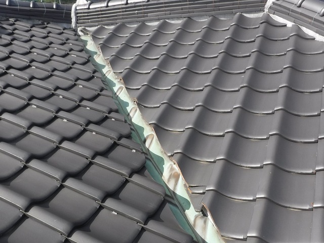 屋根補修工事 谷板金修理 屋根材(瓦) 兵庫県加西市