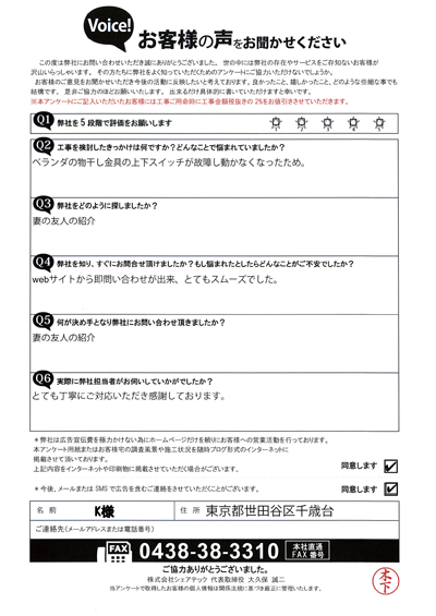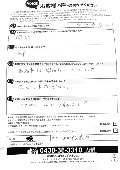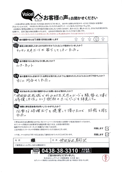 工事後のご感想をご紹介、世田谷区野沢にある住宅の屋根修理を行なわせていただいたお客様