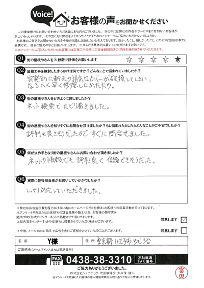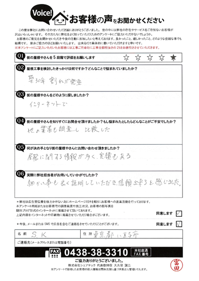 当ホームページの口コミや過去の施工実績を拝見して、納得出来る評価が多かったので、ホームページから屋根の点検を申し込みました。