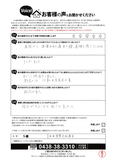 目黒区で屋根工事を行ったお客様の声