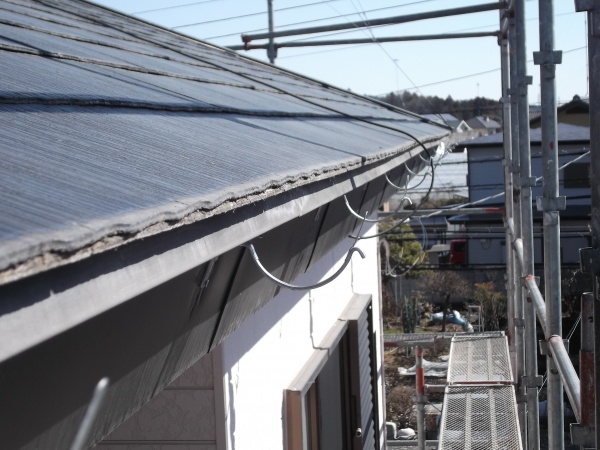 岸和田市の屋根点検のご紹介です。現在お住いになっていない住宅ですが、心配なので屋根の状態を見てほしいとのご依頼です。 K様邸の屋根はアスファルトシングル葺きで、下から見ると ...続きを読む2026/02/10 宇都宮市でスチール製軒樋金具取り付け、軒樋と集水器、縦樋を設置