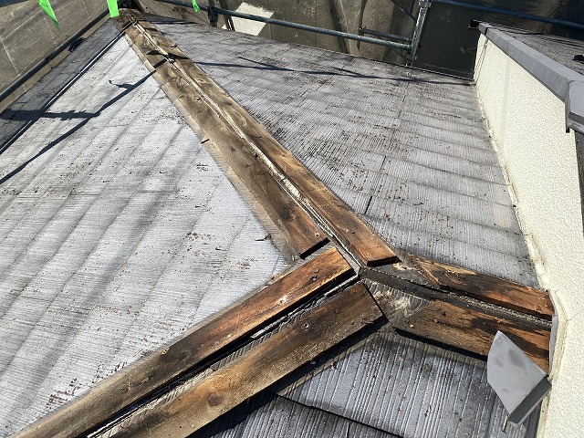 はじめに ~雨どいの工事をご依頼いただいたきっかけ~ こんにちは!静岡県沼津市でリフォーム工事を承っております、街の屋根やさん沼津店です。最近は朝晩の寒暖差も大きくなり、季節の移ろいを感じる頃となりましたね。 今回は雨どい(雨樋)のメンテナンスについてご相談いただいたお客 ...続きを読む2025/12/16 愛西市にて経年劣化で塗膜が剥がれた板金役物の取り替え改修、新規袖瓦の設置工程