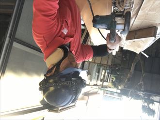 お客様のお住まいには大きなお庭がありました。住みながらなので限られたスペースで施工しなくてはいけないのですが、お庭を作業スペースとして使わせていただけたため、大変助かりました。