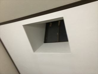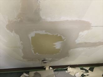 出窓から雨漏れで壁面の石膏ボードに穴ができています。大きく雨漏れしたのがつい最近ということですが、点検してみると前から雨漏りしていた形跡がありました。石膏ボードの腐食具合を見るとだいぶ前から雨漏りしていたと判断できます。