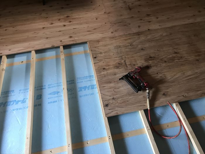 下地が一番気を使うのには仕上げの工事に直接表れてくるため気お付けます。仕上げ材は出来上がっている物を設置しますので、たいした工事ではないと考えています。下地材がきちんと初めから施工していますと、しつぜんと仕上げ材も綺麗に施工できます。知らない人が見ると一向に進んでないと思われる方なども居るかと思いますが、最後にはしっかりとした工事でまとまります。