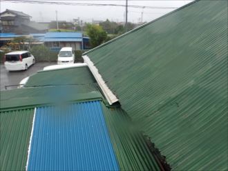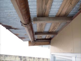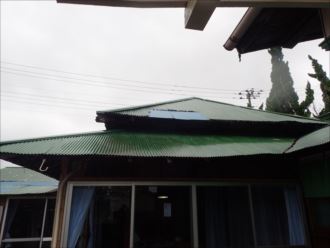 屋根は波板トタンでした。中古物件を紹介された工務店に言われるがまま、修理・リフォームをして来たそうです。古いお家なので修理する事に対して当たり前だと思い、リフォームに関しては知らないことの多いお客様でした。どう見ても、良いリフォームとは言いずらいところが多く見受けられます。屋根の修理をしたのに雨漏れがすることを伝えたら、自分は大工で専門外のことだからと言われてしまわれたそうです。
