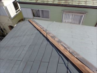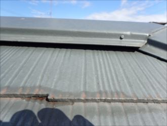 お客様のお家は一度、屋根塗装がしてありました。屋根の塗装をしてメンテナンスしても、その他の不具合などを報告してくれる工事会社は少ないようです。他の工事を勧めると金額も上がってしまうため、契約してくれないのではないかという不安からそのようなことが多いようです。必ずしも今回のケースがそうとはいえませんが、実際に棟板金は飛散してしまったのです。