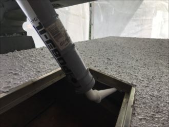 これまで使用されていたパンチング板を固定していたのは、シリコンコーキングでした。シリコンは室外には不向きなので、通常では使用いたしません。今回は変成シリコンを使い、しっかりと劣化しないように圧着固定いたしました。昆虫なども小屋裏に入り込めないようになり、これで小屋裏の通気がしっかりされます。